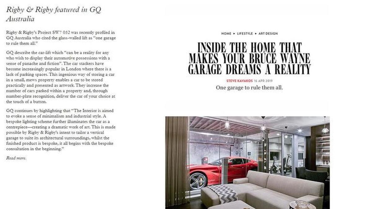 Un ascenseur à voiture discret, souterrain et vitré. Il peut sembler n'appartenir qu'à des personnages fictifs comme Bruce Wayne ou Bobby Axel Rod, mais grâce à la société d'architecture de luxe et de design d'intérieur Rigby & Rigby, il peut devenir une réalité pour quiconque souhaite présenter sa collection de voitures de manière spectaculaire.